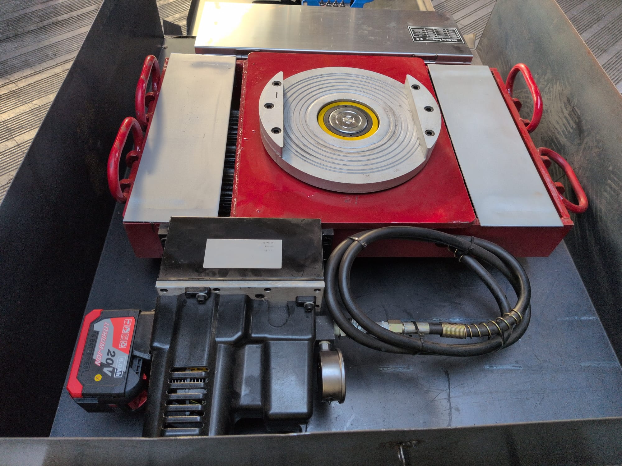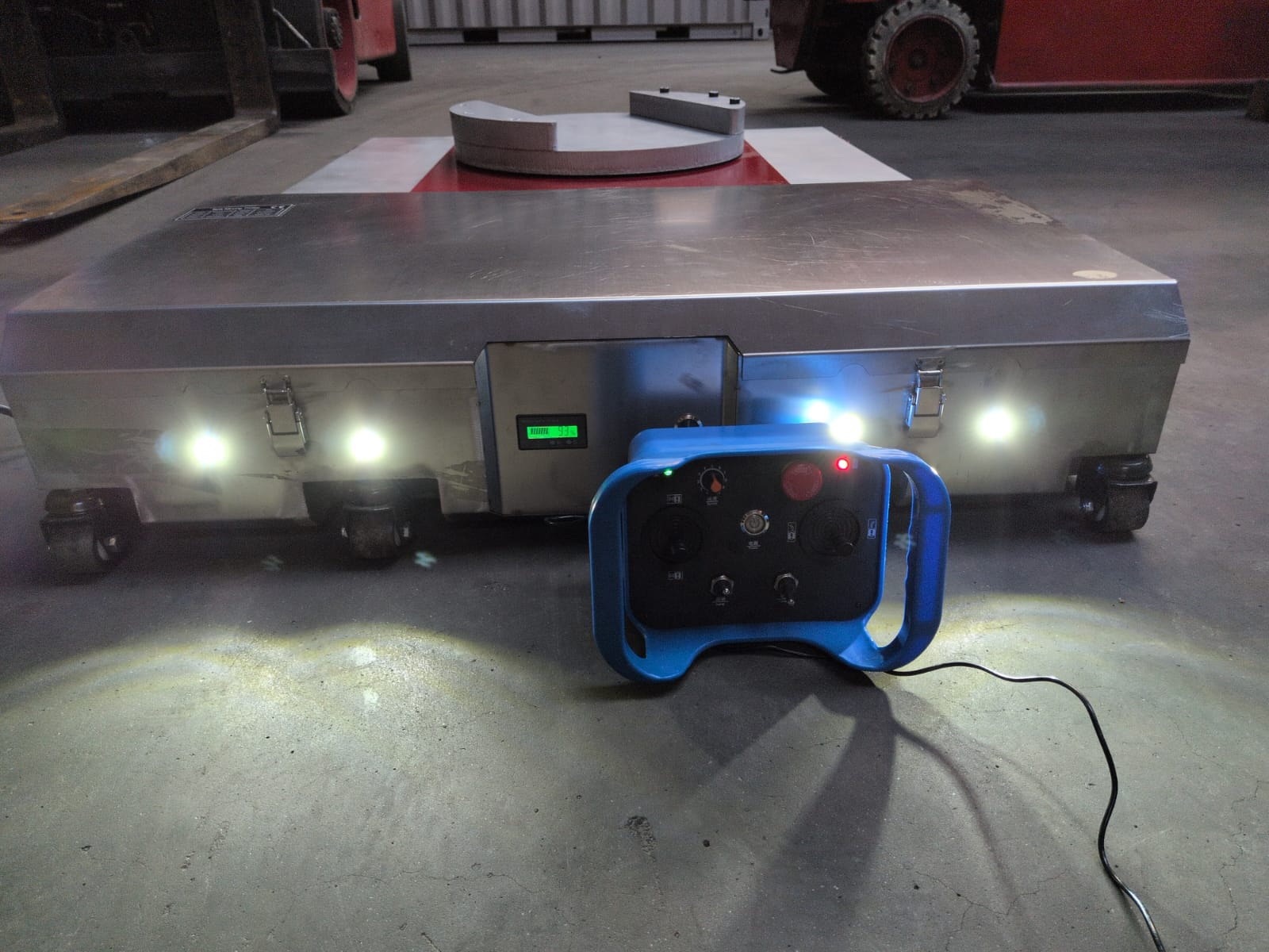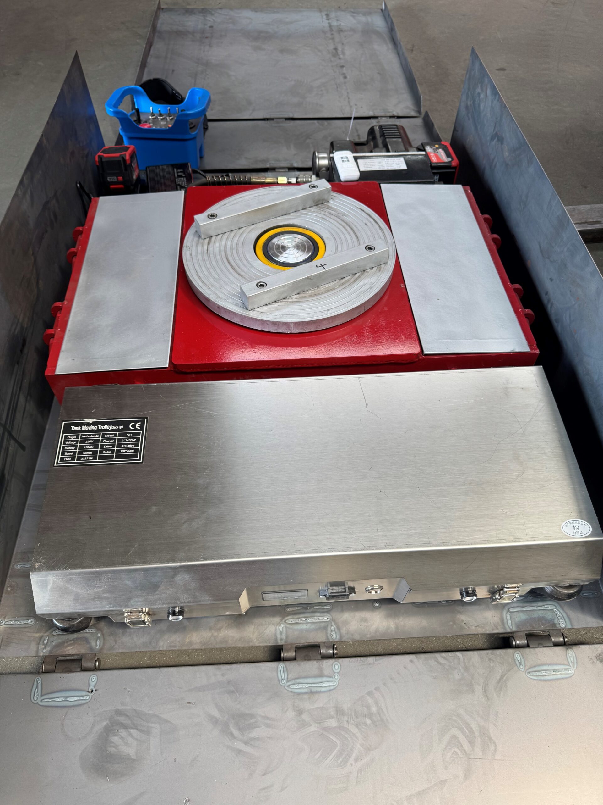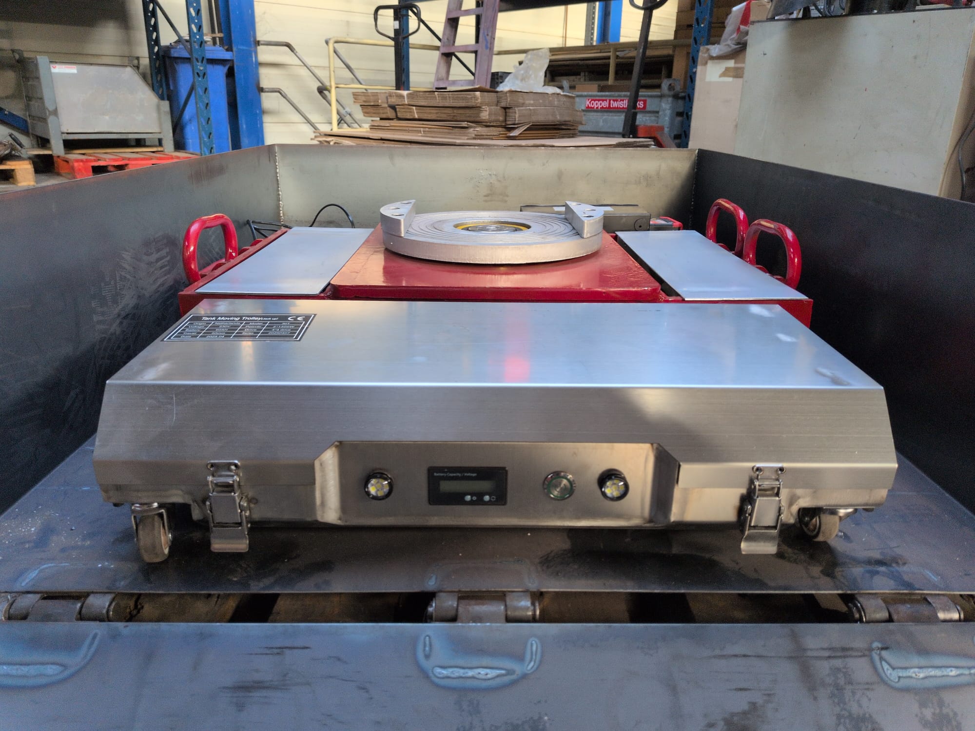 De mover beschikt over een 4×4 aandrijfsysteem, waardoor zware lasten gecontroleerd en stabiel kunnen worden verplaatst. Dankzij de proportionele snelheidsregeling kan de operator nauwkeurig manoeuvreren, wat essentieel is bij het positioneren van machines in productiehallen of tijdens montagewerkzaamheden.