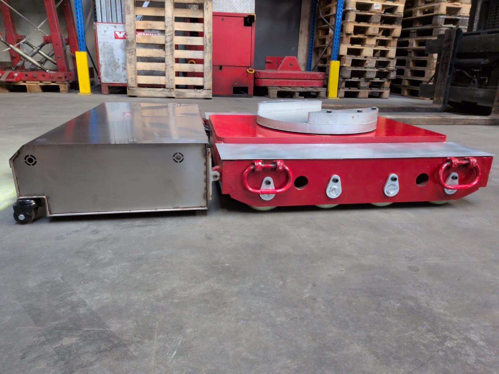 Het heavy-duty ontwerp in combinatie met hoogvermogen motoren en een versterkt stalen frame zorgt voor maximale stabiliteit onder zware belasting. De mover kan eenvoudig worden geïntegreerd in complexe transportopstellingen, bijvoorbeeld in combinatie met transportframes, skates of hydraulische systemen.